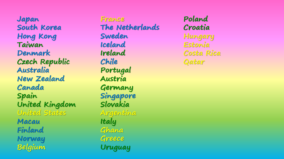 - Yellow – Some areas and/or cities are dangerous/uneasy to travel solo and don’t travel at night