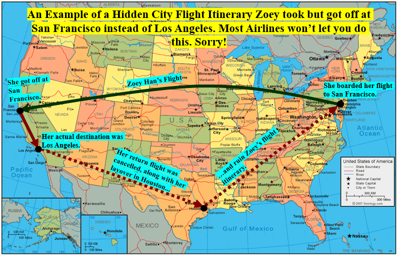 She clicked on the flight itinerary (details) and began to make her purchase. Therefore, she purchases an airline ticket (one-way) with a layover in San Francisco (her actual destination). She planned not to take her final flight to Los Angeles. She claimed she got her better deal by paying for her return flight using her original flight itinerary: Los Angeles with a layover in Houston, and her final destination was Philadelphia.