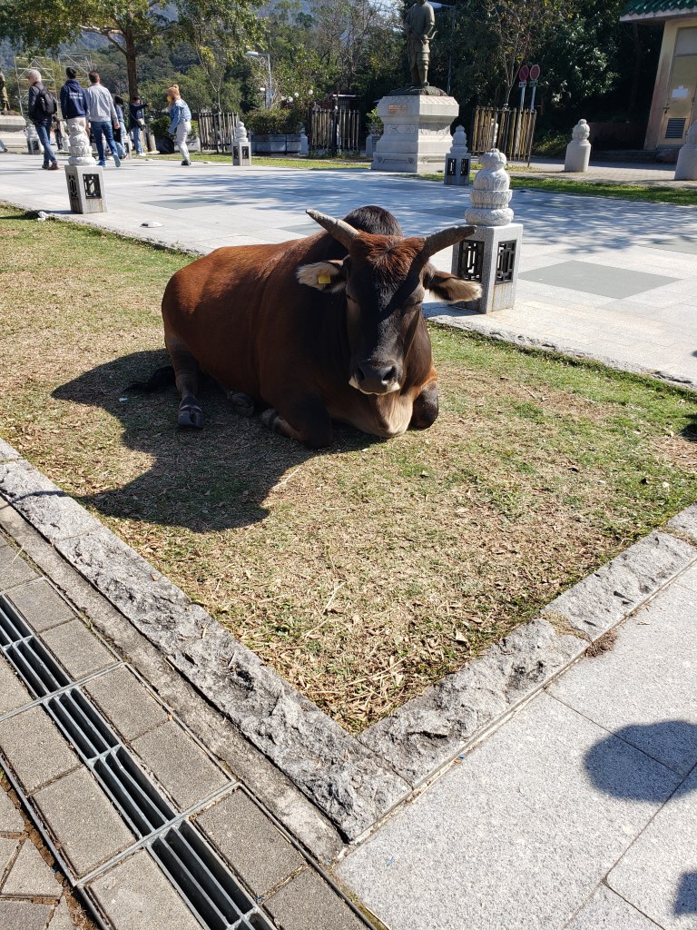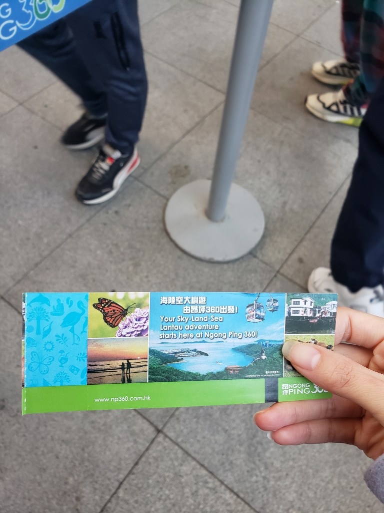 We headed to Ngong Ping 360 (昂坪360), which is a popular tourist attraction in Hong Kong, and we were thrilled to discover that we could take a cable car ride. The cable car ride offers a unique way to experience the stunning views of Hong Kong’s mountainous terrain and the surrounding ocean. If you ever find yourself in Hong Kong, this is definitely an experience that you must try!