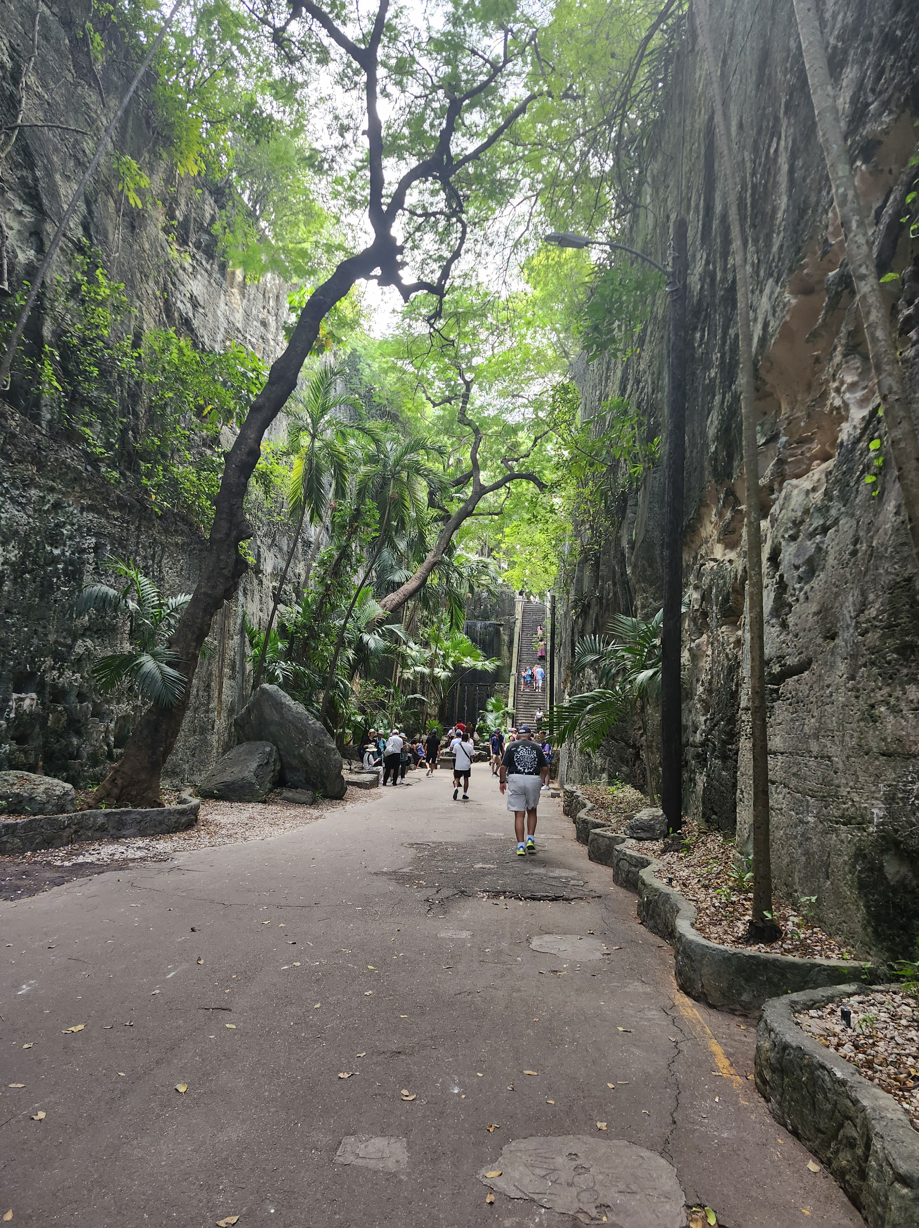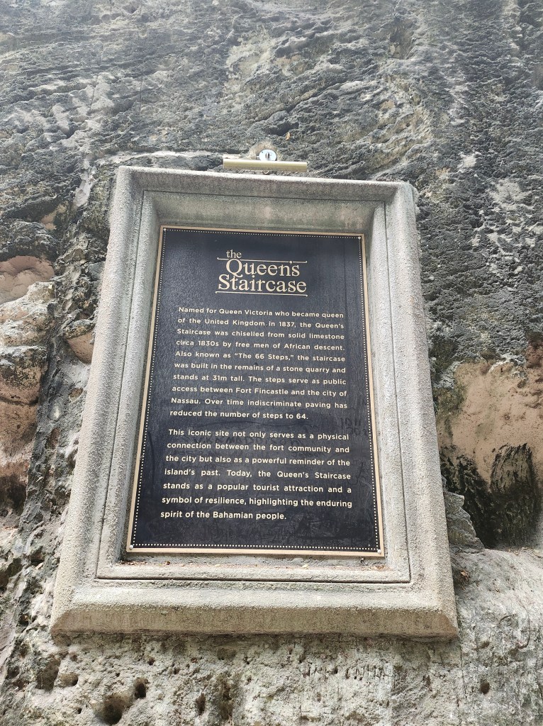 Next, I headed to the Queen’s Staircase, an awe-inspiring monument tucked away in Nassau’s lush heart. Known locally as the “66 Steps,” this stone staircase was painstakingly carved out of solid limestone by 600 enslaved people in the late 18th century, not 1974 as often mistaken. The sun-dappled steps, framed by mossy walls and cascading greenery, echo with centuries of island history. Climbing up and down is not only a workout but also a moving experience—a walk through time, where each footfall is a tribute to resilience and hope.